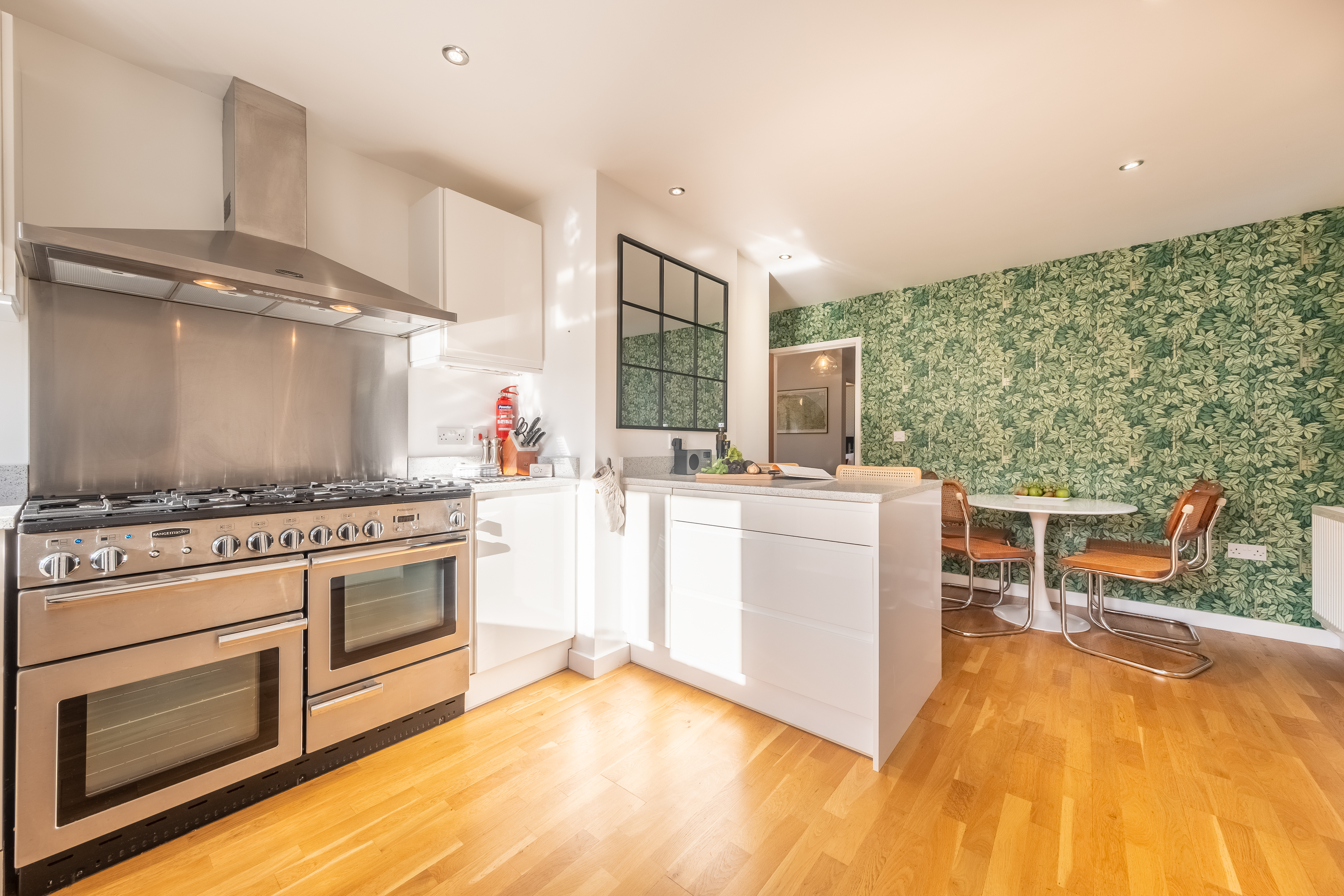 Parking for 2-3 cars; secure storage for bikes and sports equipment in garage, as well as table football table.